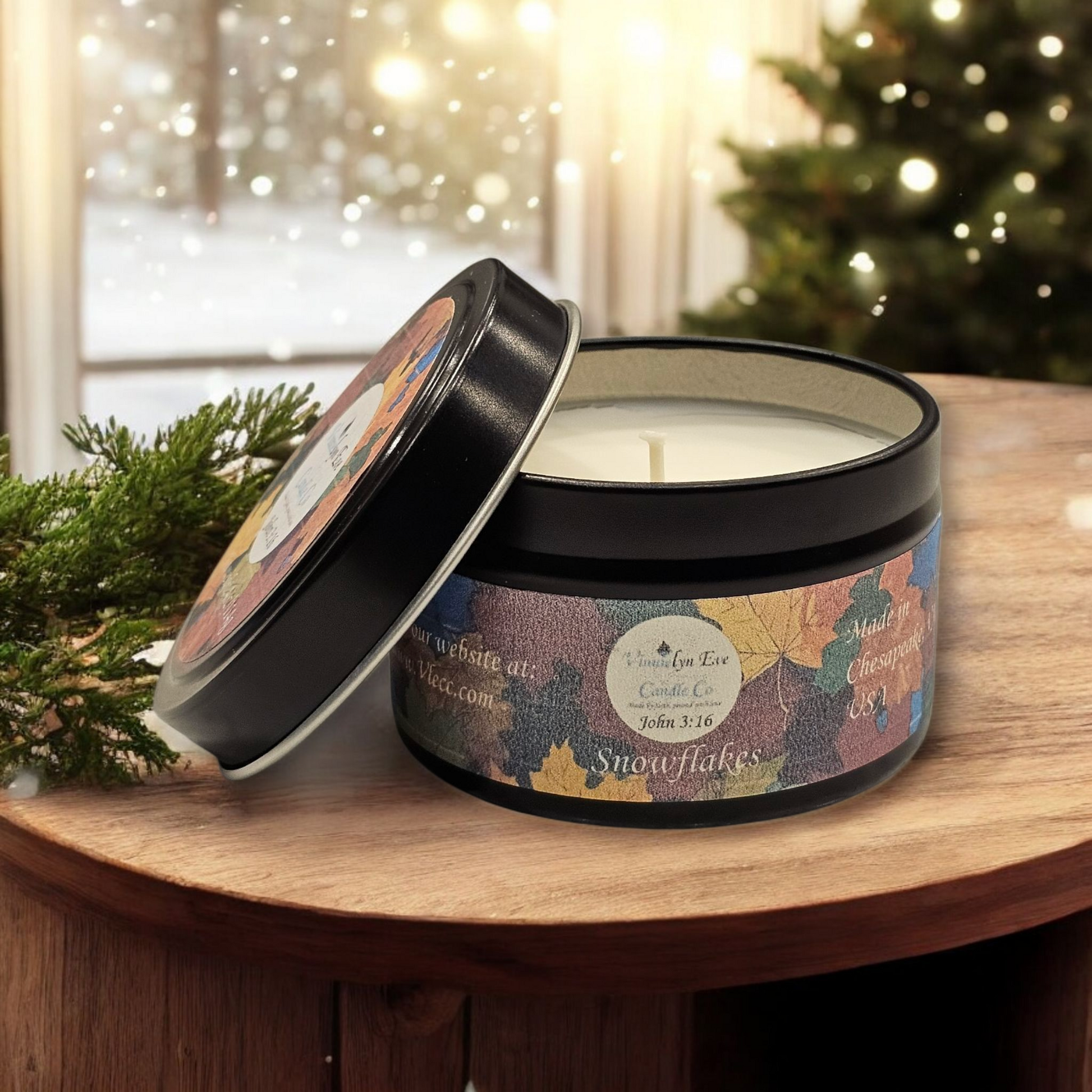 Experience the refreshing scent of our Snowflakes candle. This unique blend of fragrances feature notes of eucalyptus, bergamot, and green leaves- infused with patchouli for a grounding base. Let this light and airy fragrance transport you to a picturesque landscape, as individual snowflakes gently fall. This candle is perfect for the winter season.