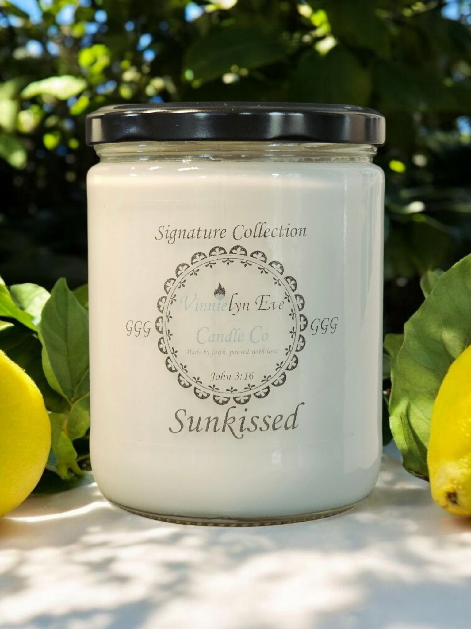 Experience the refreshing and invigorating power of Sunkissed! Let the sweet scent of lemons transport you to a bright, sunny day. Embrace the warmth of the sunshine and feel the energy it brings. The perfect scent to provide a lift on a gloomy day.